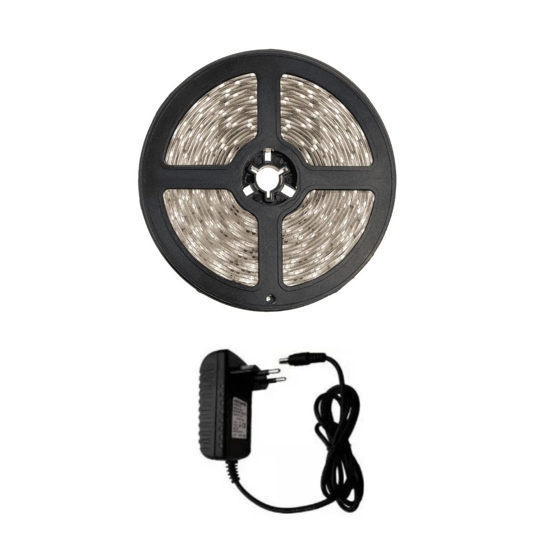 Kit de fita com 5 metros incluindo a fonte, podendo ser utilizada em diversos ambientes, a fita de led vem com fita autoadesiva